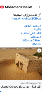 يسعدني أن أشارككم مقابلتي مع إذاعة مونت كارلو الدولية، حيث تحدثت بصفتي رئيس جمعية الدفاع عن الطبيعة والعمل البيئي في موريتانيا، ومواطنًا عالميًا ملتزمًا بقضايا العدالة المناخية، عن التحديات البيئية التي نواجهها في منطقتنا، وأهمية دور المجتمع المدني في إيجاد حلول مستدامة.